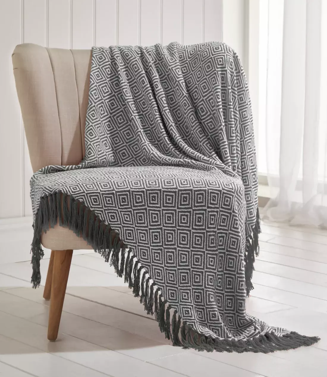 Ascot Cotton Throw Chevron Fringed Sofa Blanket