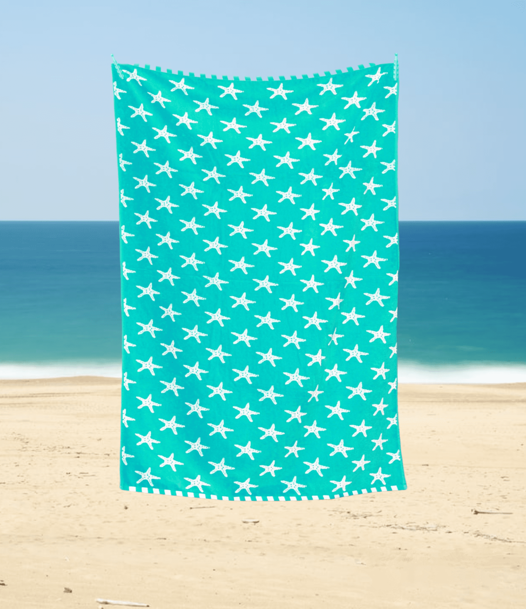 Experience ultimate comfort and style with our Coral Star Ocean-themed beach towel. Made with premium 400gsm yarn-dyed cotton, this beach towel is not only plush and absorbent, but also strong and durable, perfect for your frequent beach visits. The soft velour finish on one side provides extra comfort, while the all-over print design adds a touch of elegance to your beach style. The Terry finish on the other side makes it super absorbent, allowing you to quickly dry off after a swim. Measuring 85 x 165cm, this generously sized towel can easily accommodate you and your beach essentials. It’s also easy to care for and can be machine washed at 40 degrees Celsius. To ensure optimal performance, we suggest washing it once or twice before use. With its fun and stylish Coral Star Fish design, this beach towel is the perfect accessory to add to your beach gear collection. So why wait? Looking for a Couples beach towel set try the aqua and coral starfish beach towel together today and hit the beach in style!