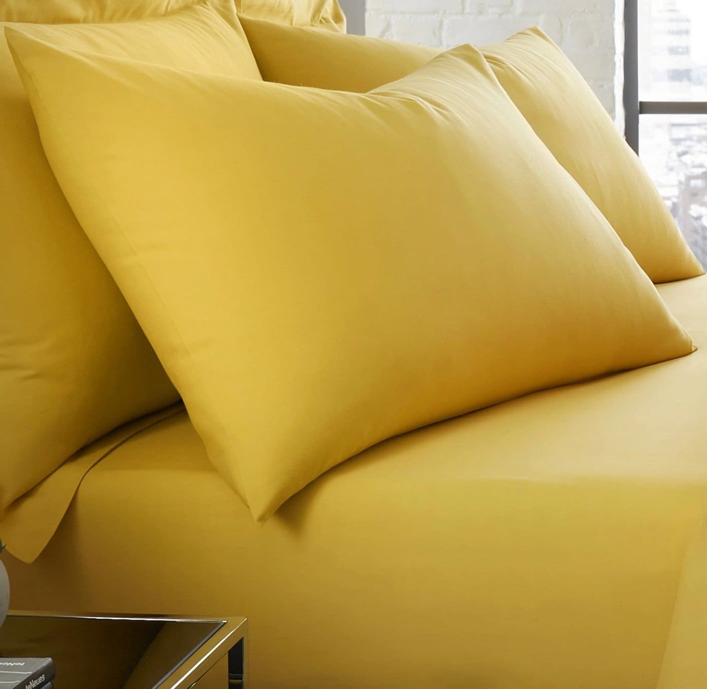 Modern and classic colours available in white, light grey, mustard yellow and mid blue. Fitted sheets with elastic corners to stay on your mattress. Sizes single, double and king. Matching Pillowcase’s also available in the same colours. Housewife Pillowcase Luxury Soft 180 Thread Cotton Blend