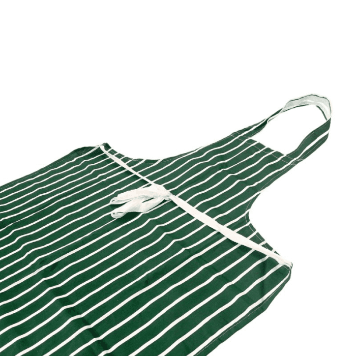 Bring timeless style and practicality to your business with our Classic Striped Aprons, available in green or red. Made from high-quality cotton fabric, these aprons are built to handle daily wear in butcher shops, cafés, catering kitchens, market stalls, and food service environments.