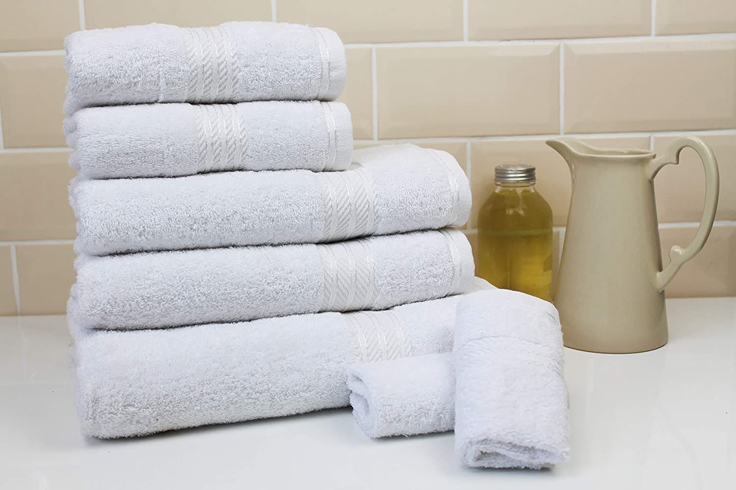 AMAZON REVIEW- Bought these towels for my newly decorated black and white downstairs toilet , so pleased with them , lovely bright white , very soft and a good size , hang over my black towel rail perfectly .