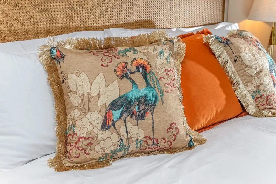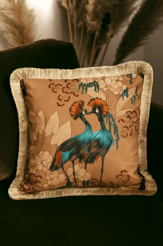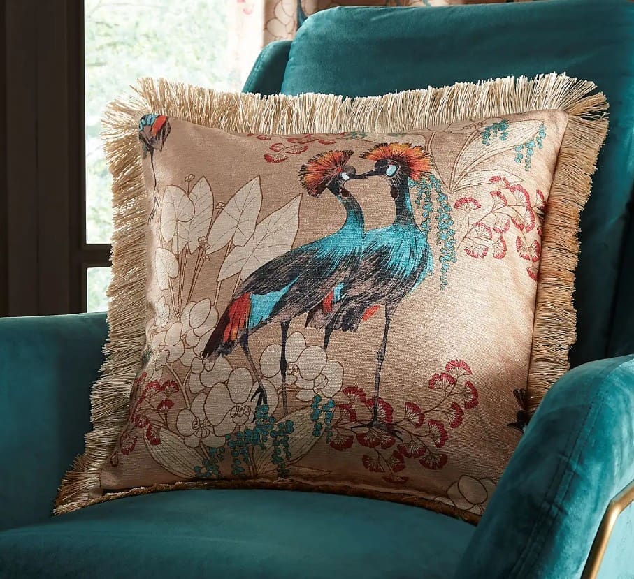 Bring sophisticated tropical charm to your home with the Mariba Gold Cushion Cover. Featuring a rich botanical print with teal accents on a warm gold backdrop, this 45x45cm cover adds bold style and timeless elegance to any space.