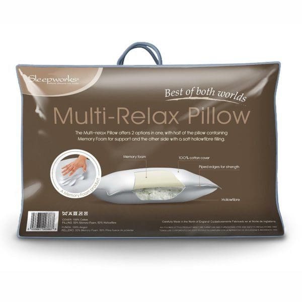 The best of both worlds, this Multi Relax pillow benefits from being fully reversible so you can customise your night’s sleep each night! With one side memory foam that moulds to your head and neck and the other springy hollowfibre, this pillow offers support, comfort and a touch of luxury!