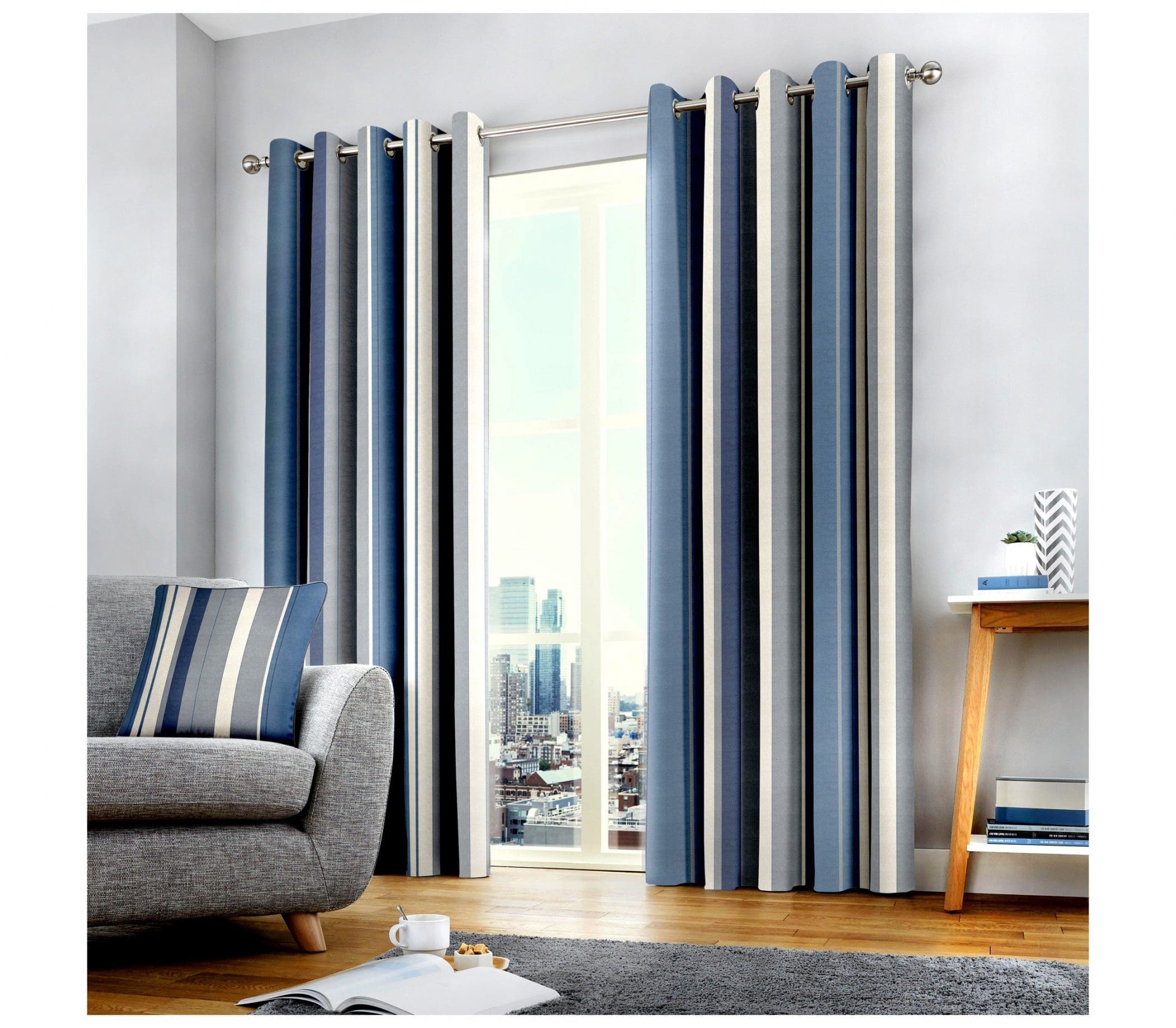 Blue and Grey Curtains Striped Whitworth